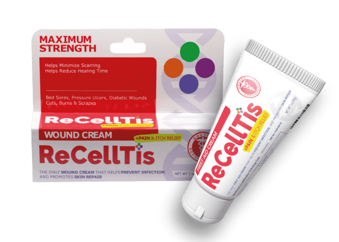 ReCellTis Wound Cream is a proprietary topical wound cream to treat acute & chronic wounds such as diabetic wounds, pressure ulcers (bed sores), post-surgical wounds, and most open wounds from Stage 1 to Stage 4 with a proven effectiveness.